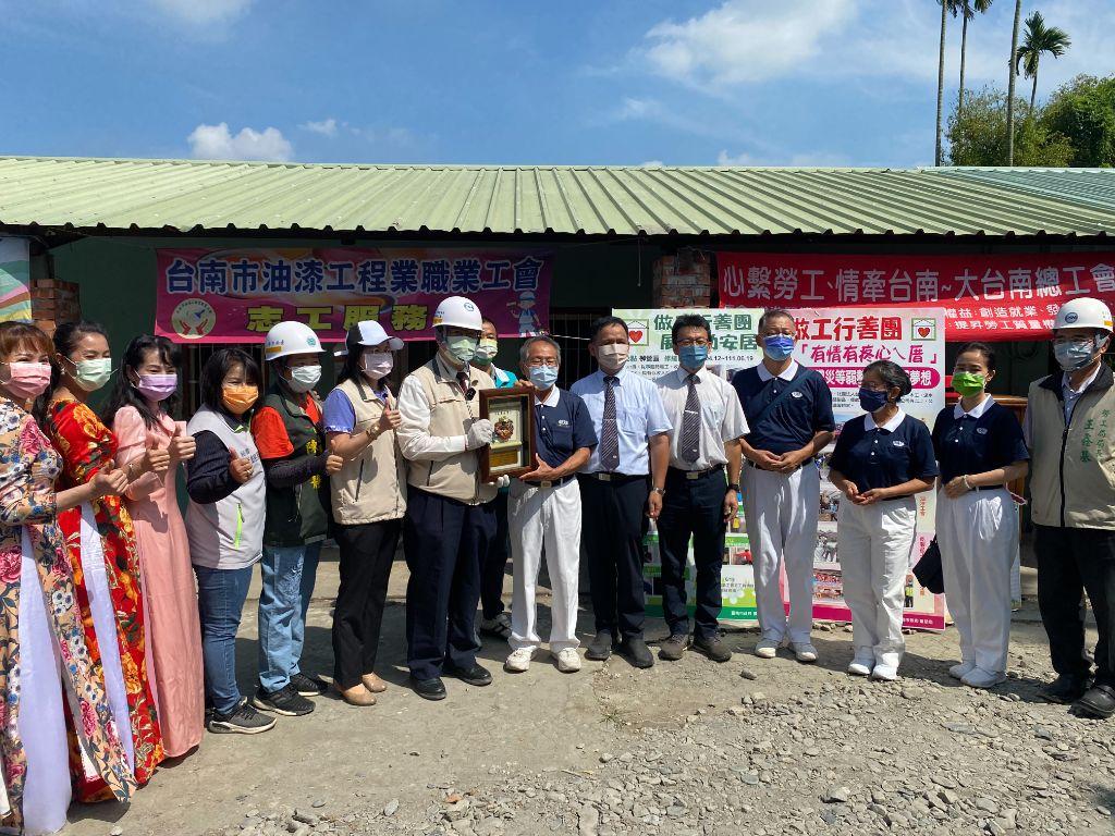 另外,黃市長特別提到,2013年年底,臺南市政府獨步全臺,號召各工會專業志工成立「做工行善團」幫助弱勢民眾修繕老舊破敗的房屋,使其得以安身安居,迄今已屆滿十年,修繕近三百戶家庭,慈濟志工不僅協助清掃,也負責事後關懷,與市府形成密切合作。黃偉哲肯定:「他們不僅有愛心,更展現高度的專業與行動力。」